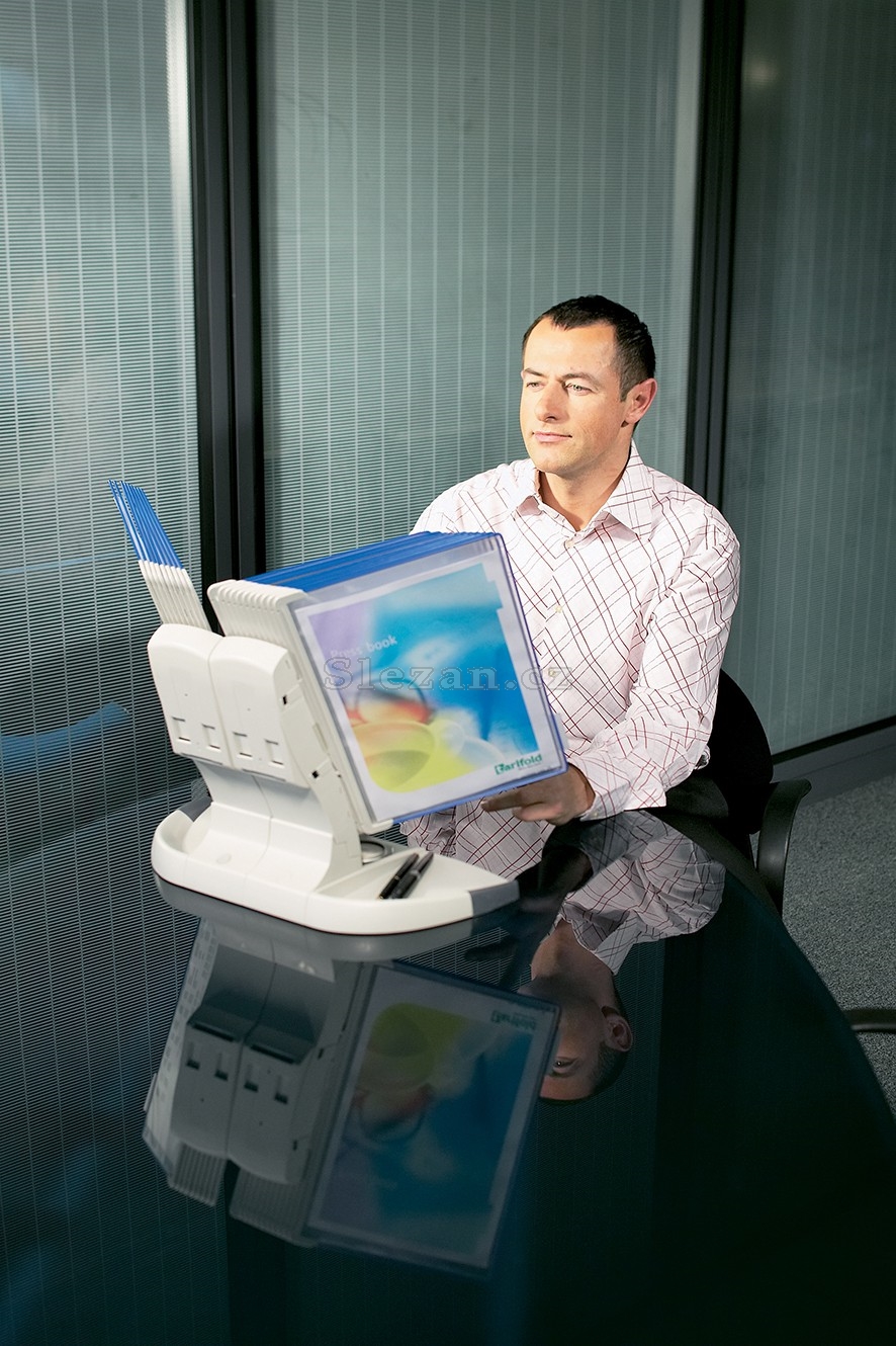 Elegantní plastový pultový stojan Design s 10 kapsami A4. Stojan je vyroben z odolného ABS plastu. Je vhodný pro umístění do kanceláří, na recepce, do vstupních hal, čekáren apod. Díky multifunkčnímu podstavci je velmi stabilní a obsahuje místo na uložení kancelářských doplňků. Jednoduché vložení a vyjmutí kapes pomocí úchytů a integrované zarážky pro optimální rozevření kapes. Kapsy Design s plastovými úchyty jsou vyrobeny z ekologicky šetrného polypropylenu. Barevný rámeček je uvnitř zpevněn kovovým drátem, který zajisťuje stálý tvar a pružnost lemu. V kompletu jsou plastové indexové záložky (rozměr: 5 cm), 5 ks. Lze neomezeně rozšiřovat jeho kapacitu přikoupením plastového dílu pro rozšíření držáku Design. Barva rámečku: modrá.