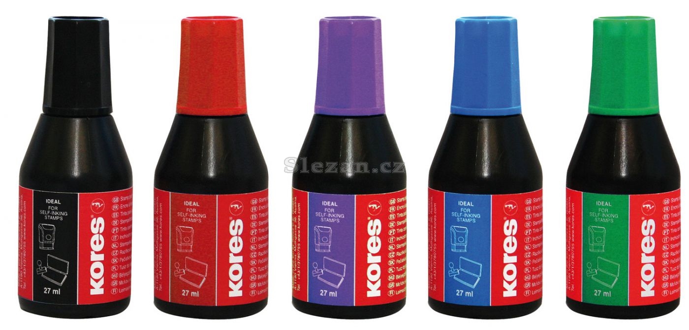 Intenzivní barva, nebledne. Odolná vůči UV záření, dlouhá životnost. 27 ml. Vhodné i do samonamáčecích razítek. Barvy: černá, červená, fialová, modrá, zelená.