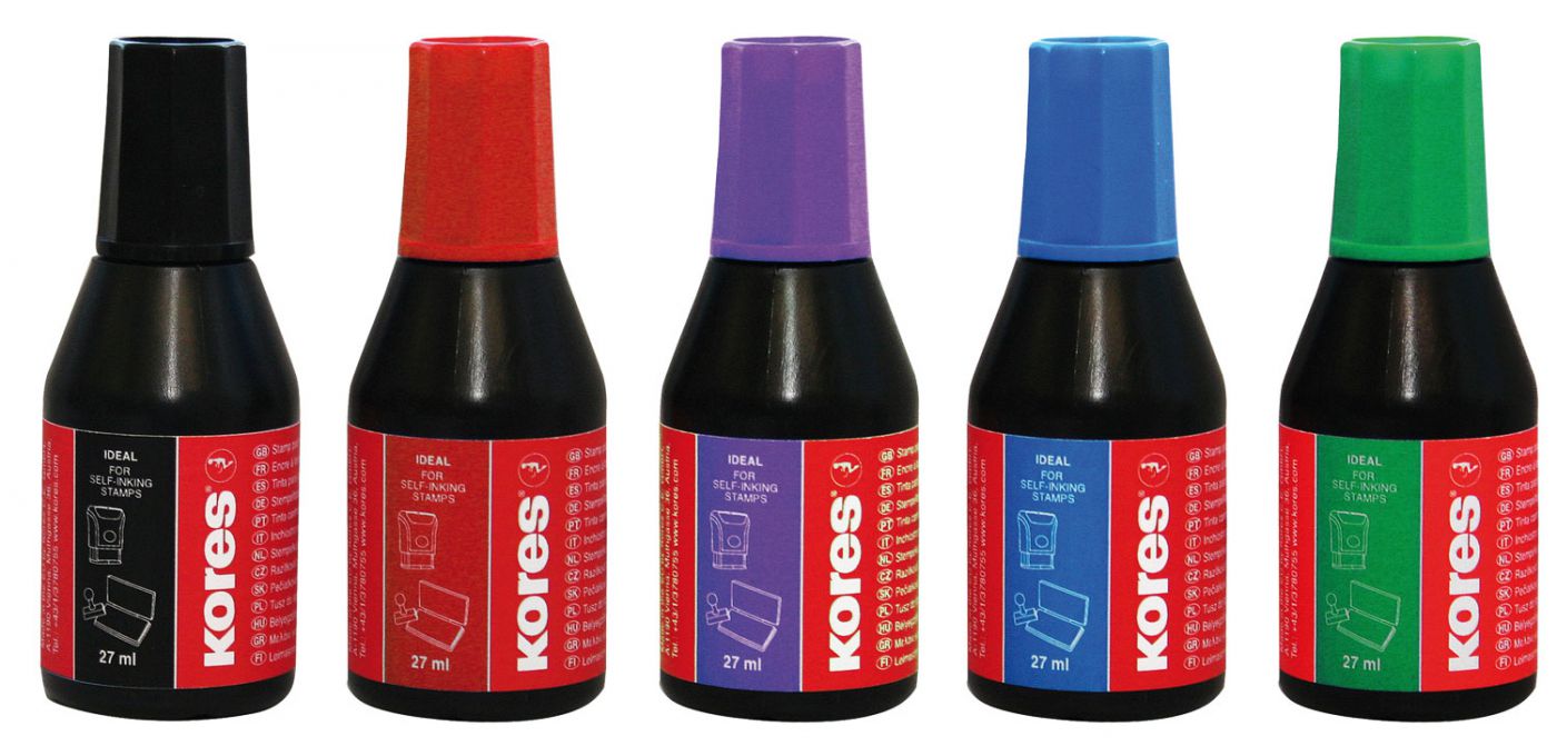 Intenzivní barva, nebledne. Odolná vůči UV záření, dlouhá životnost. 27 ml. Vhodné i do samonamáčecích razítek. Barvy: černá, červená, fialová, modrá, zelená.