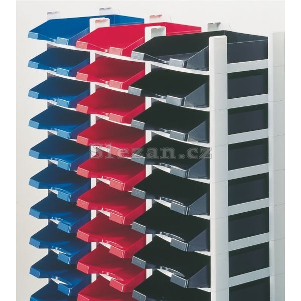 - Stohovací moduly (poličky) a vrchní víko ve světle šedé barvě, všechny odkladače vždy v jedné shodné barvě