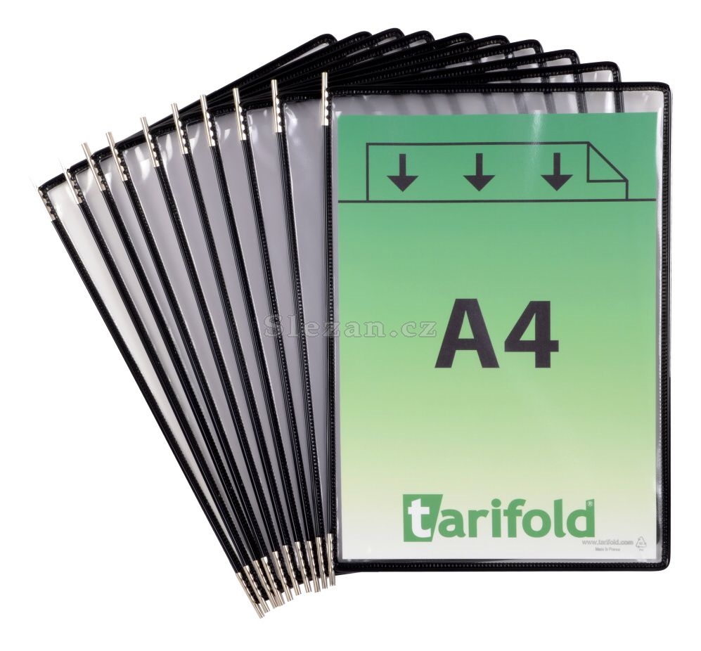 Základní kapsový rámeček sloužící pro přehlednou prezentaci, formát A4, otevřené shora. Každé balení obsahuje ještě 5 ks plastových štítků na popisky, kterými můžete kapsy odlišit. Určeny pro kovové stojany a závěsné držáky Tarifold. Okraje kapes jsou vyztuženy ocelovým drátem potaženým odolným plastem. Barvy: modrá, černá, zelená, žlutá, bílá, červená a mix barev.