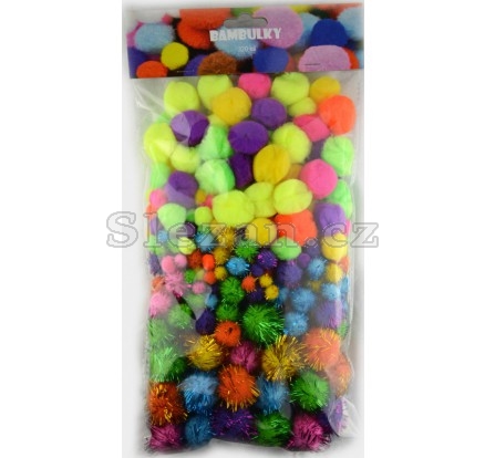 Bambulky - akrylové a třpytivé. Akrylové: 3 cm - 30 ks, 2,5 cm - 31 ks, 1,5 cm - 41 ks, 1 cm - 76 ks. Třpytivé: 3 cm - 30 ks, 2 cm - 30 ks, 1,5 cm - 41 ks, 1 cm - 41 ks.