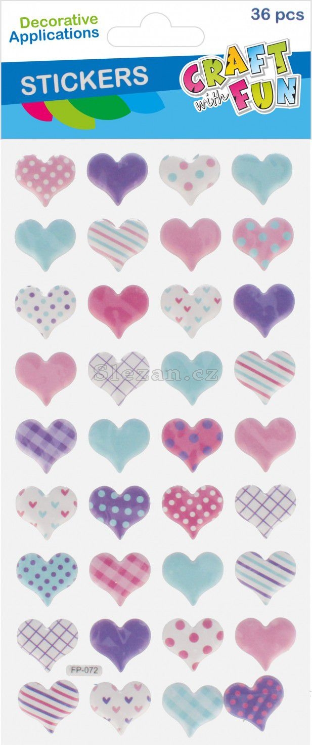 Obsah balení: 36x samolepky Puffy Heart, mix barev. Všechny prvky z plastu.