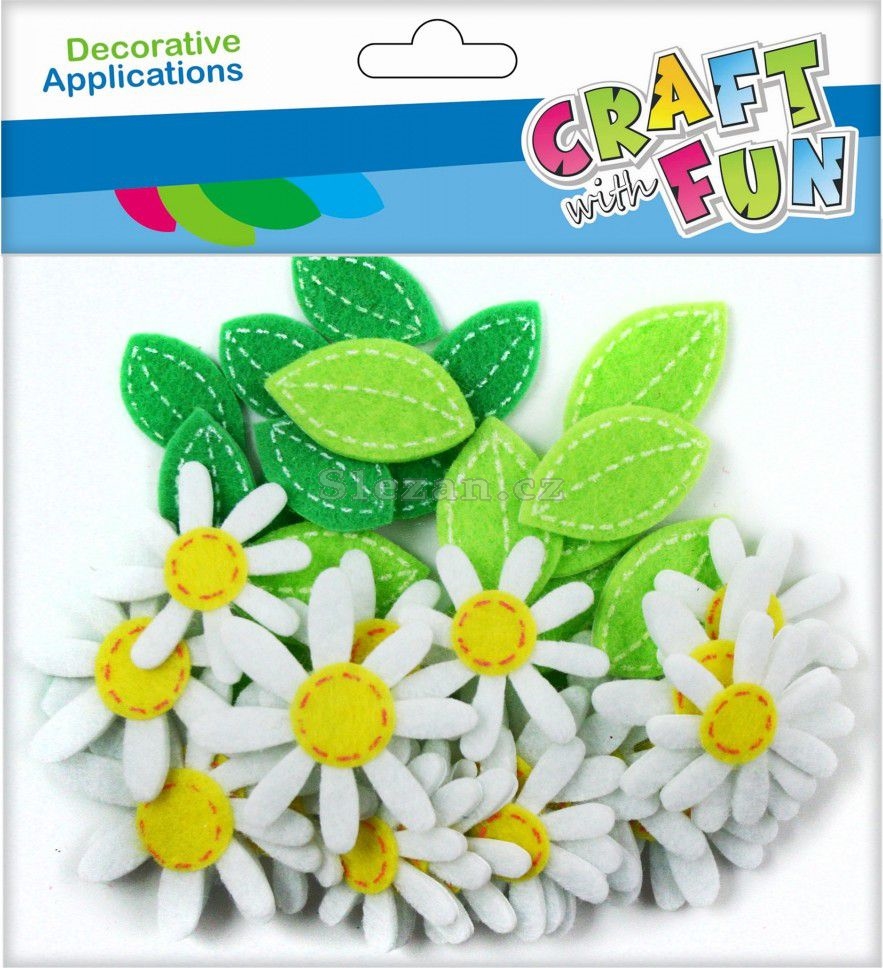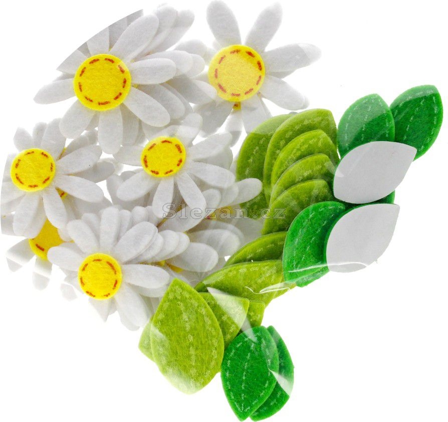 0bsah balení: 40 kusů plstěných dekorací sedmikrásek.
