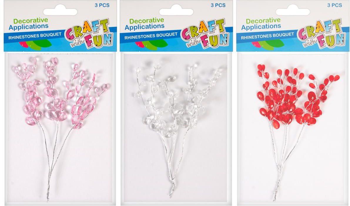 Krásná dekorativní kytička z růžového krystalu na drátku-3ks