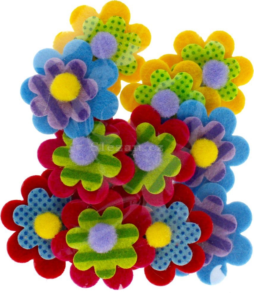 Obsah balení: 12 kusů barevných pěnových samolepek Flowers.