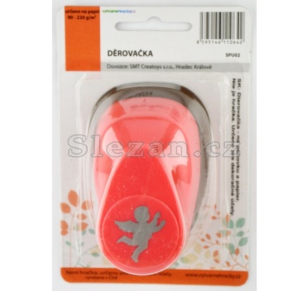 Děrovačka pro výtvarnou tvorbu. Postup: 1. pracujte s děrovačkou na pevné a rovné ploše. 2. vložte papír vhodné tloušťky - 90-220 g/m2 a zatlačte na páku statickým tlakem. Nikdy ne úderem na páku. 3. POUŽÍVEJTE POUZE NA PAPÍR. Děrovačky nikdy nepoužívejte na materiály potažené lepící vrstvou (například na samolepicí štítky), na pěnovku, na papírové ubrousky. Děrovačky nejsou vhodné pro děti do 3let