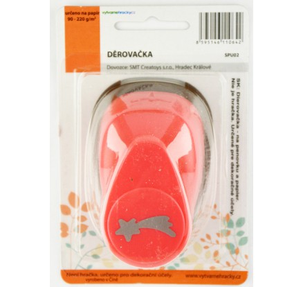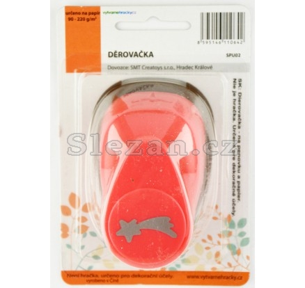 Děrovačka pro výtvarnou tvorbu. Postup: 1. pracujte s děrovačkou na pevné a rovné ploše. 2. vložte papír vhodné tloušťky - 90-220 g/m2 a zatlačte na páku statickým tlakem. Nikdy ne úderem na páku. 3. POUŽÍVEJTE POUZE NA PAPÍR. Děrovačky nikdy nepoužívejte na materiály potažené lepící vrstvou (například na samolepicí štítky), na pěnovku, na papírové ubrousky. Děrovačky nejsou vhodné pro děti do 3let.