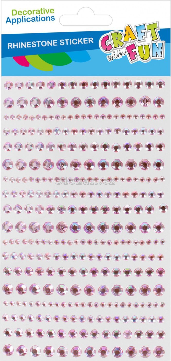 Obsah balení: 18x krystaly různých velikostí v růžové barvě. Krystaly mají zespodu lepidlo, které usnadňuje jejich připevnění a horní část krystalu je vypouklá. Krystaly vyrobené z plastu.