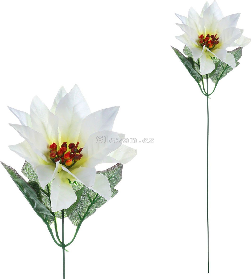 Květina umělá. Poinsécie, vánoční růže , barva bílá - jednohlavá