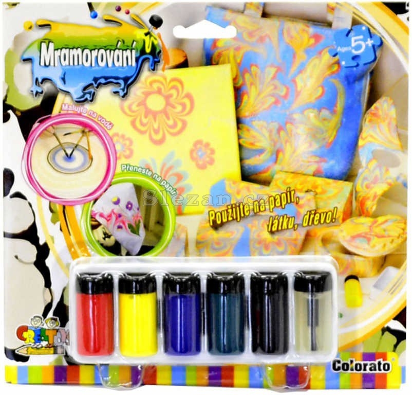 Sada na mramorování pro všechny výtvarně nadané děti. Balení obsahuje 6 barviček s perem a doplňky.