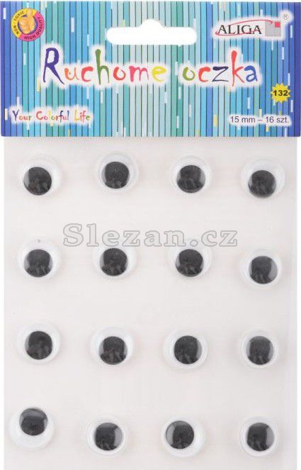 Popis Oči pohyblivé 15mm, 16ks kulaté, samolepicí