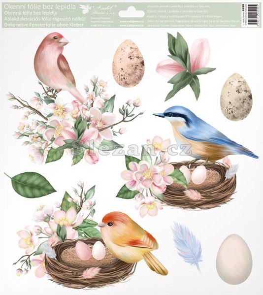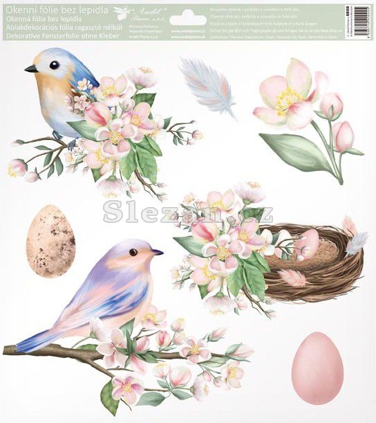 Popis Okenní fólie 6888 ptáčci s glitry 30 x 33,5 cm