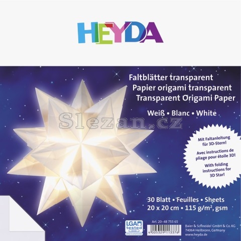 Origami 20x20 115g hvězda transp.bílá - 30 ks