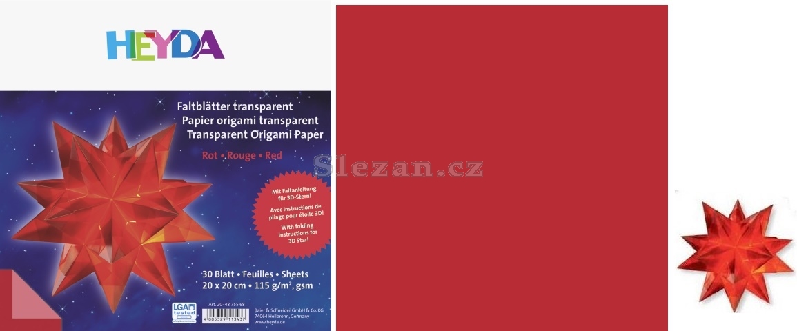 Popis Origami 20x20 115g hvězda transp.červená