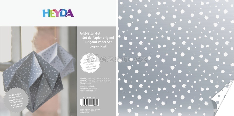 Origami 15x15cm a 20x20cm 90g krystal stříbrný/bílý (20 ks od každé velikosti) - 40 ks
