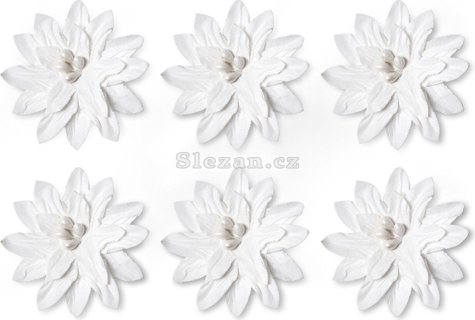 Papírové květiny samolepicí Dalia bílá, 6ks