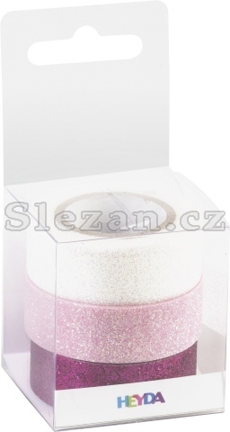 Popis Páska 1,5cm x 3m Glitr pink/růžová/bílá 3 ks