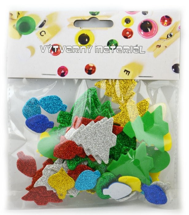 4 x 4 cm, 8x malý stromek - zelená, stříbrný (třpytivý), zlatý (třpytivý), červený (třpytivý) 3,5 x 3 cm.