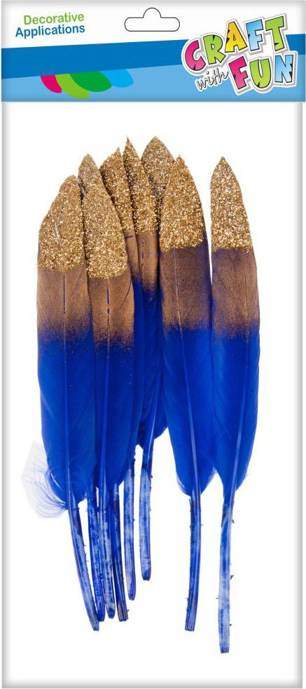 Popis Peří 10-15 cm, 8 ks modré/zlaté
