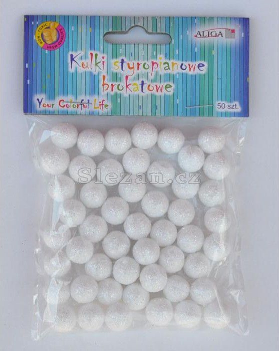 Popis Polystyrenové kuličky s perleťovým brokátem