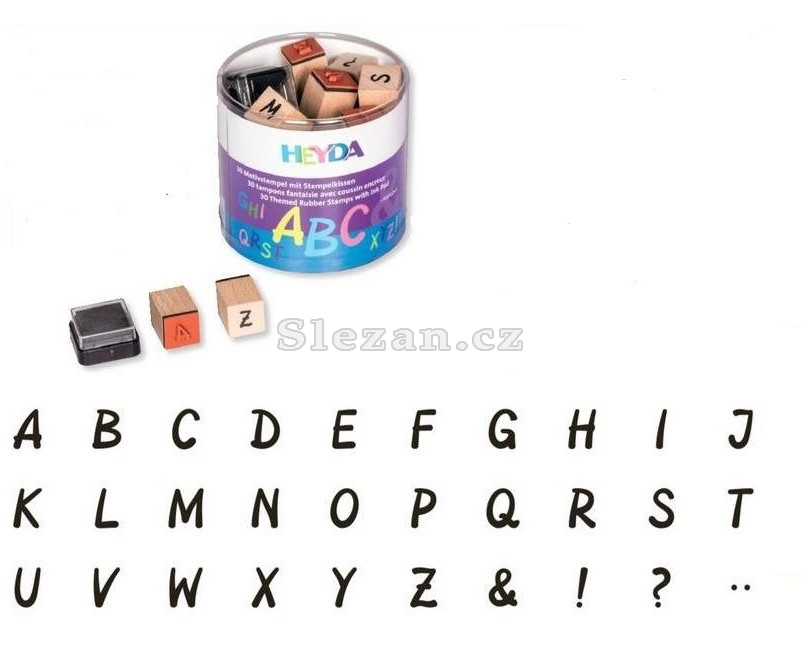Razítkovací set v plastové dóze - abeceda, s razítkovacím polštářkem