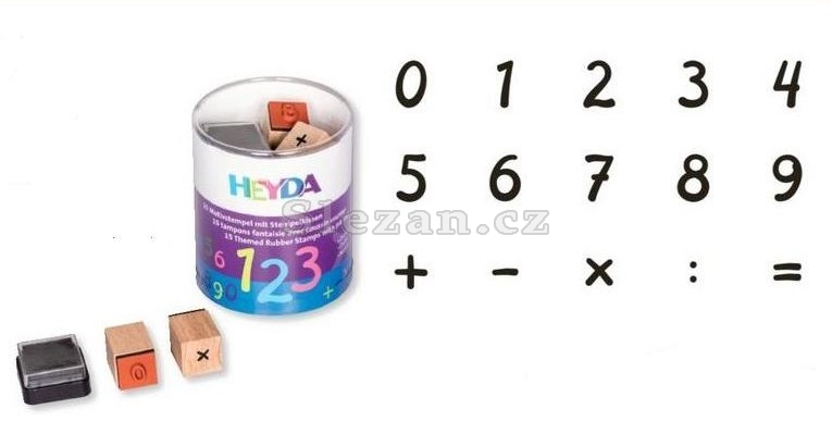 Razítkovací set v plastové dóze - 15 ks, číslice, výška motivu 1,5 x 1,5 cm