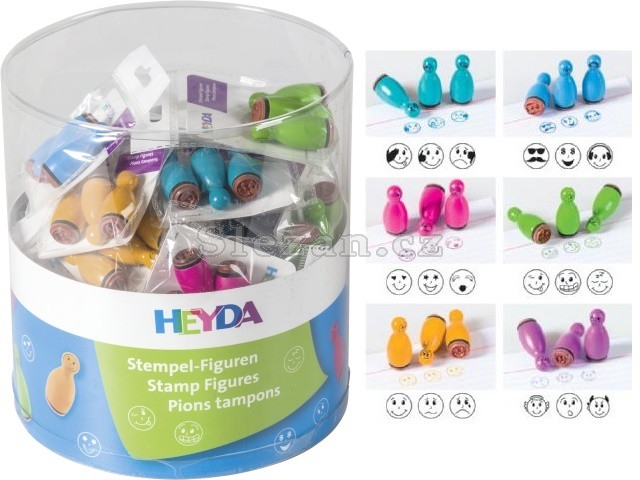 Razítka dřevěné lakované kuželky - různé motivy smajlíků.