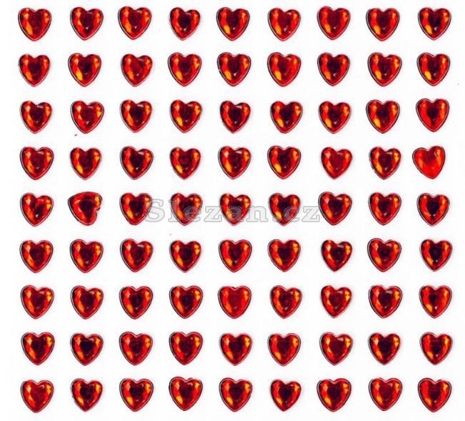 Nalepovací srdce - plastové, barva červená, 108 ks.