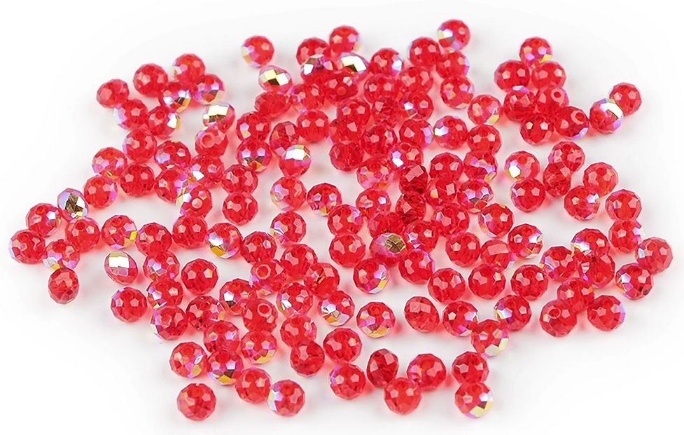 Popis Skleněné korálky broušené ohňovky 4 mm s AB efektem 4 červená - AB