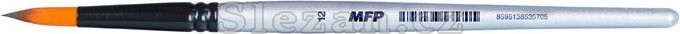 Štětec kulatý s jemným syntetickým vlasem tvarovaným do špičky a dřevěnou rukojetí.