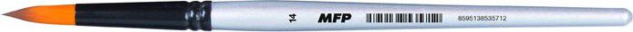 Štětec kulatý s jemným syntetickým vlasem tvarovaným do špičky a dřevěnou rukojetí.
