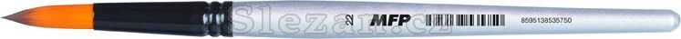 Štětec kulatý s jemným syntetickým vlasem tvarovaným do špičky a dřevěnou rukojetí.