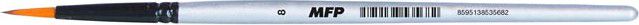 Štětec kulatý s jemným syntetickým vlasem tvarovaným do špičky a dřevěnou rukojetí.