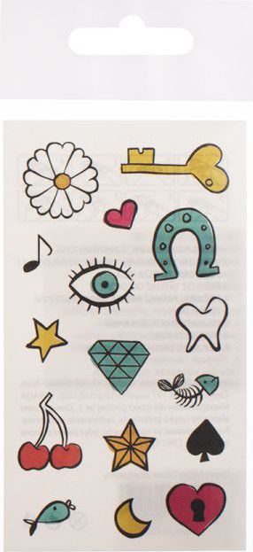 NÁVOD: 1. Vystřihněte zvolený motiv a odstraňte krycí fólii. 2. Obrázek přitiskněte na čistou a suchou pokožku. 3. Shora vodou navlhčete papírovou podložku obrázku a po 30ti sekundách opatrně odstraňte. 4. Obrázek nechejte zaschnout.