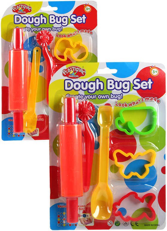 Veselá barevná tvořivá sada z plastu, obsahující váleček a dva nožíky se třemi vykrajovátky, ve dvou variantách provedení, na kartě. Pěkná sada pro všechny kreativní děti, jako doplněk k modelíně.