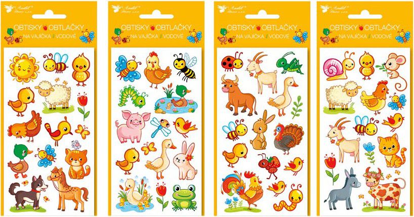 Velikonoční obtisky na zdobení vajíček. Jednoduše si nazdobte vajíčka, je to snadné. Vyberte si motiv, vystřihněte, navlhčete, přitiskněte obrázkem na vajíčko, opatrně sejměte podkladový papír a nechte zaschnout. Motiv: mix motivů Uvedená cena je za1 aršík.