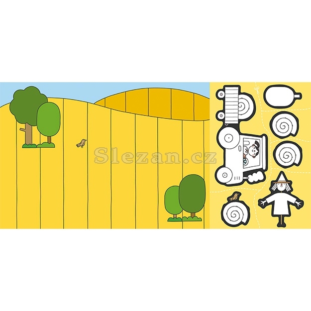 obsahuje 16 stran plných obrázků a prvních slov a 4 listy samolepek pro dolepení na správné místo.