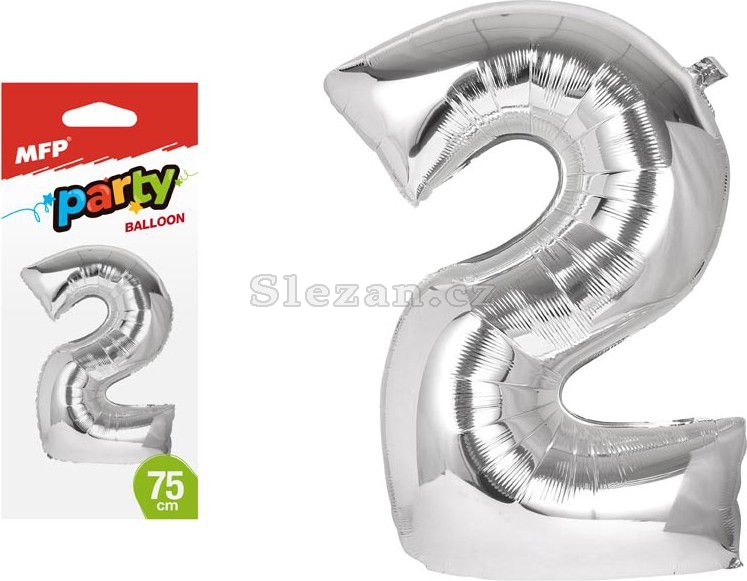 Nafukovací fóliový balónek ve tvaru čísla 2 - Hitem posledních let jsou oblíbené balónky ve tvaru číslic, které oživí celou narozeninovou oslavu a zajisté potěší oslavence. Narozeninová oslava může začít! Balónek je vyroben ze stříbrné fólie. Na horní straně balónku jsou očka na přivázání. Výška balónku: 75 cm