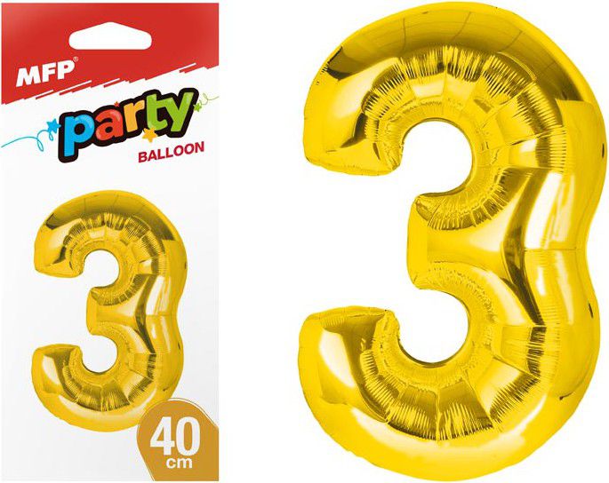 Nafukovací fóliový balónek ve tvaru čísla 3 ve zlaté barvě. Hitem posledních let jsou oblíbené balónky ve tvaru číslic, které oživí celou narozeninovou oslavu a zajisté potěší oslavence. Narozeninová oslava může začít! Balónek je vyroben ze stříbrné fólie. Na horní straně balónku jsou očka na přivázání. Výška balónku: 40 cm