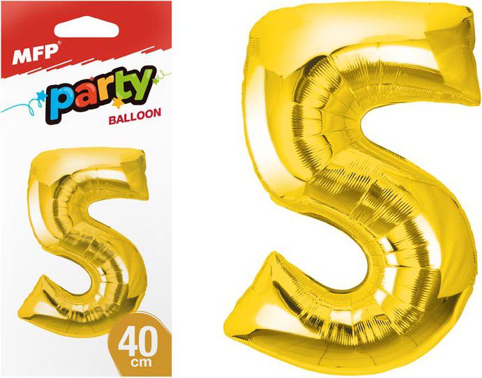 Nafukovací fóliový balónek ve tvaru čísla 5 ve zlaté barvě. Hitem posledních let jsou oblíbené balónky ve tvaru číslic, které oživí celou narozeninovou oslavu a zajisté potěší oslavence. Narozeninová oslava může začít! Balónek je vyroben ze stříbrné fólie. Na horní straně balónku jsou očka na přivázání. Výška balónku: 40 cm