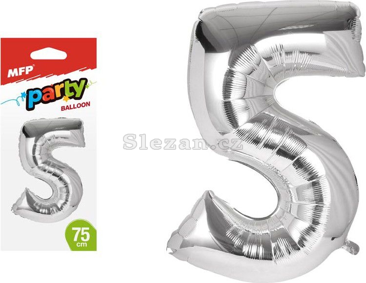 Nafukovací fóliový balónek ve tvaru čísla 5 - Hitem posledních let jsou oblíbené balónky ve tvaru číslic, které oživí celou narozeninovou oslavu a zajisté potěší oslavence. Narozeninová oslava může začít! Balónek je vyroben ze stříbrné fólie. Na horní straně balónku jsou očka na přivázání.