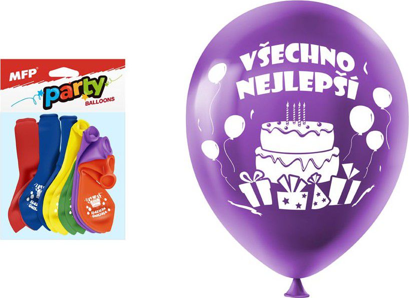- BALENÍ OBSAHUJE: - 12 ks barevných balónků s nápisem Všechno nejlepší