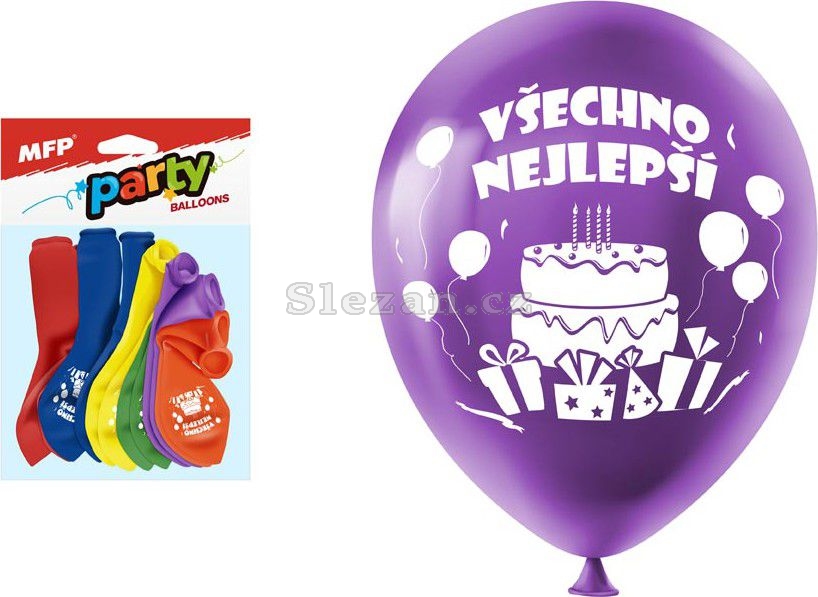 Nafukovací balónek s potiskem Všechno nejlepší - balónky jsou oblíbeným dekoračním doplňkem na narozeninové oslavě či jiné významné události. Nafukovací balónky nesmí chybět na žádné oslavě, dodají tu pravou atmosféru do celé místnosti a narozeninová párty může začít! BALENÍ OBSAHUJE: - 12 ks barevných balónků s nápisem "Všechno nejlepší" VAROVÁNÍ: Vhodné pro děti od 8 let. Děti se mohou prasklými či vyfouknutými balónky zadusit nebo uškrtit. Používejte pouze pod dozorem dospělé osoby. Dospělá osoba se po nafouknutí balónku musí přesvědčit, že jej děti používají bezpečně. Vyfouklé balónky udržujte mimo dosah dětí a prasklé ihned zlikvidujte. K nafukování balónků použíjte pumpičku. Nepřibližujte balónky k očím a obličeji. Při prasknutí může balónek způsobit zranění. Vyrobeno z přírodního kaučuku, latexu. Určeno k dekorativním účelům. Nebezpečí vdechnutí a spolknutí malých částic. Uvedená cena je za 1 balení po 12 ks. Dodáváme v sáčku se závěsem.