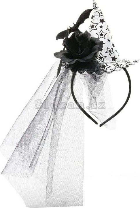 Čelenka Čarodějnický klobouk se závojem, stříbrný