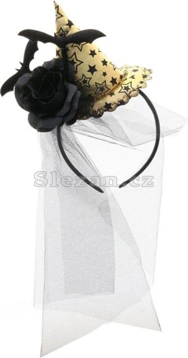 Čelenka Čarodějnický klobouk se závojem, zlatý