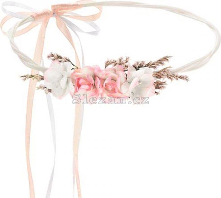"Květinová korunka" - čelenka,věneček s umělými, drobnými květinami ve světle broskvové barvě.