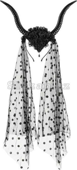 Čelenka Zloba se závojem a s plastovými rohy – temně kouzelný doplněk nejen na Halloween.