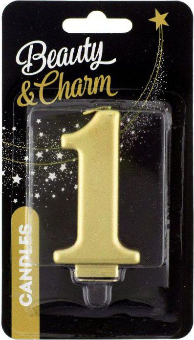 Popis Dortová svíčka číslice 1 metalická, zlatá 8cm