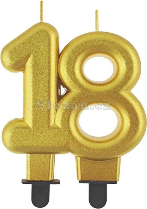 Dortová svíčka číslice 18 metalická, zlatá 8cm
